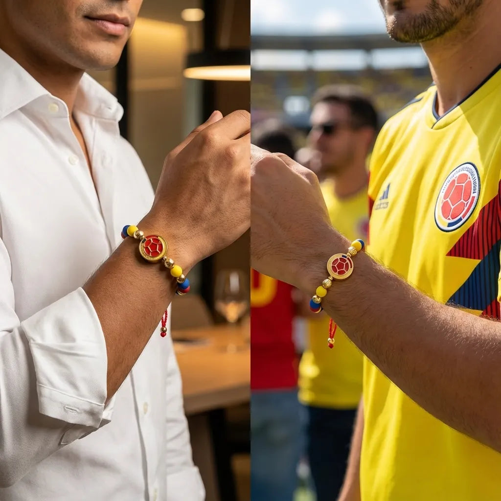 La Manilla Tricolor Elite Colombia combina lujo, pasión y patriotismo en una sola pieza. Inspirada en la Selección, está hecha con materiales premium y diseñada para que cada hincha lleve el orgullo nacional con estilo y personalidad.