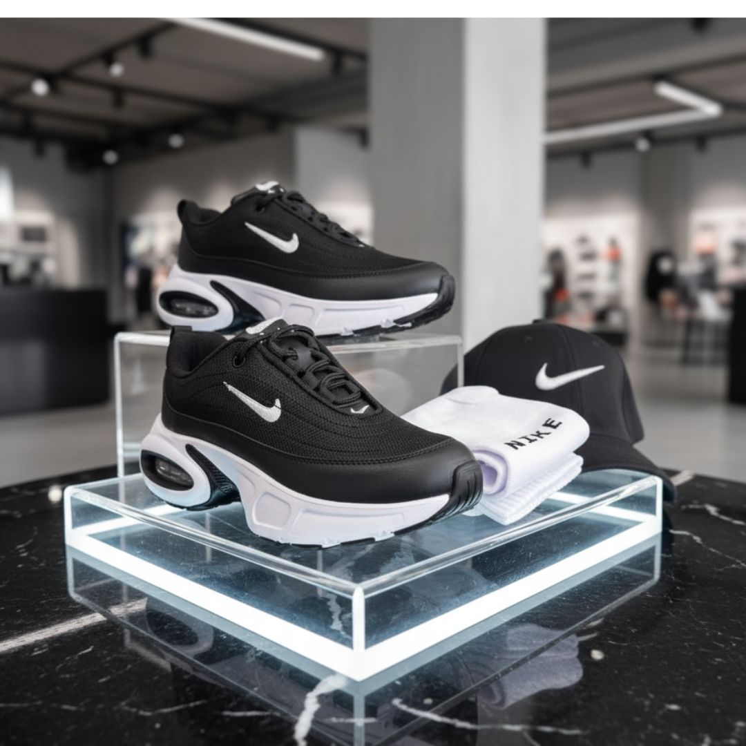 ⭐️⭐️⭐️⭐️⭐️Catalina R. – Medellín"¡Me encantó el combo! Los tenis son súper cómodos, los uso para ir al gym y también para salir. La gorra queda perfecta y las medias son muy suaves. Todo llegó rápido y bien empacado."