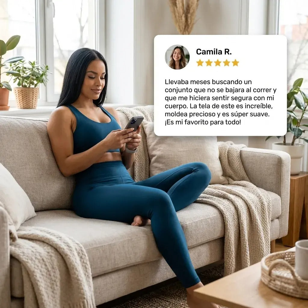 ⭐⭐⭐⭐⭐“¡El mejor conjunto que he comprado! No se baja, no se transparenta y me hace ver increíble. Me siento más segura hasta para salir.”— Mariana L.